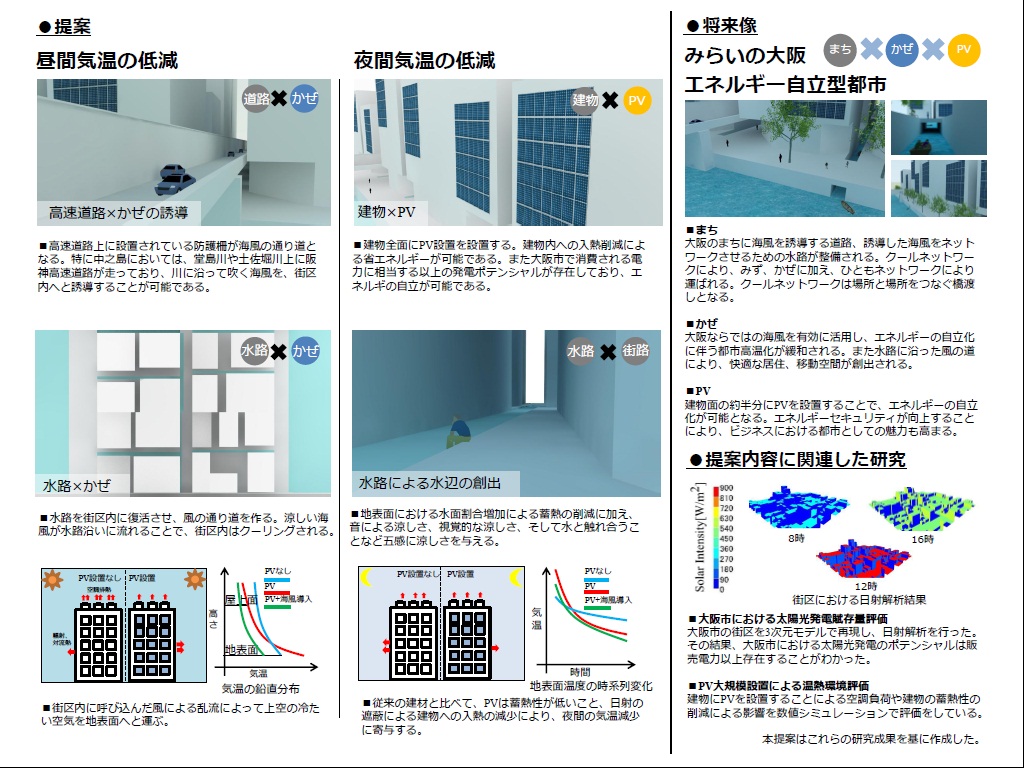 コンペでは、クールスポット100選で選定したようなクールスポットがネットワークされ、面として広がっていくことにより、低炭素型社会の形成やエネルギー問題に貢献し、都市魅力あふれる大都市・大阪の